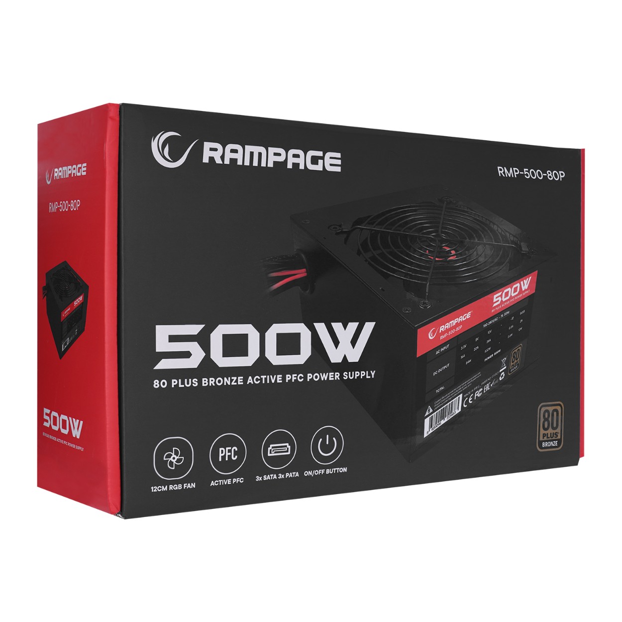 RAMPAGE RMP-500-80P 500W 80 PLUS 12cm Fan A ktif PFC Power Supply – KAR48224