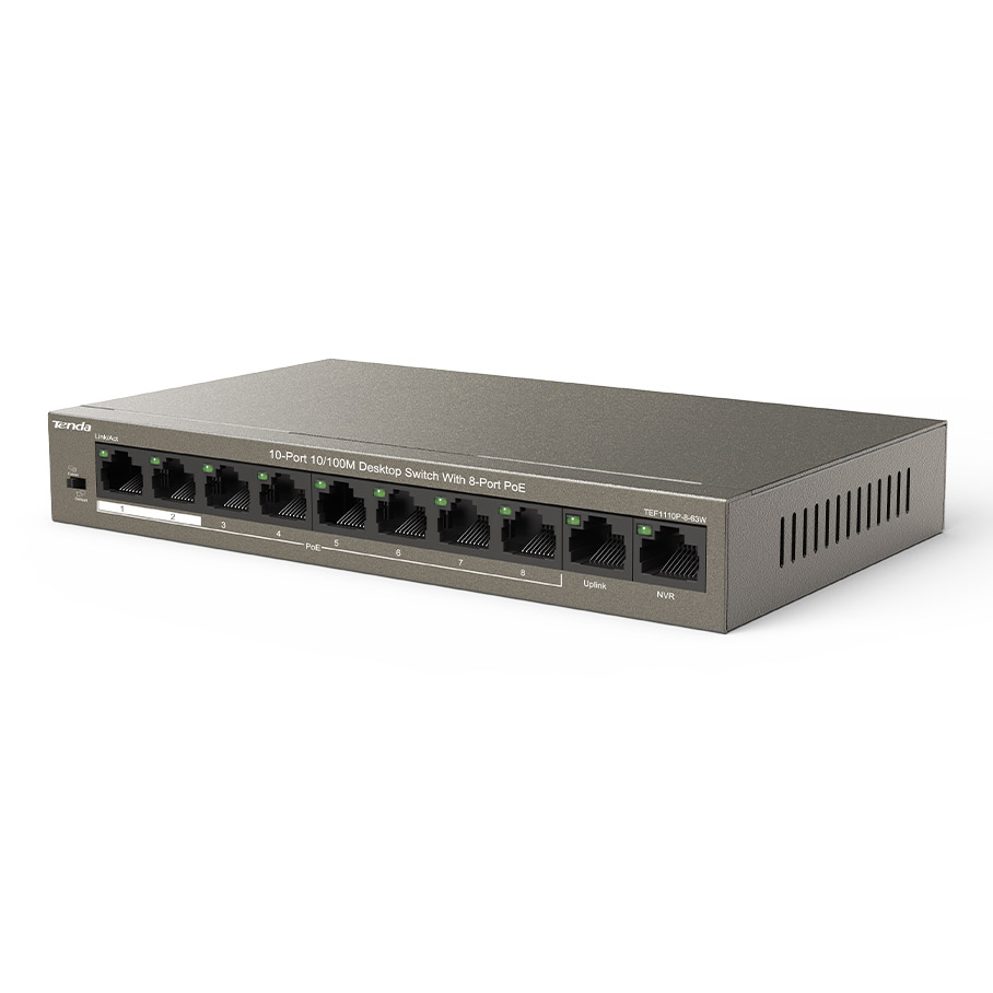 TENDA TEF1110P-8-63W 8FE PoE Port (58W), 2FE Uplink Desktop Switch – KAR58195