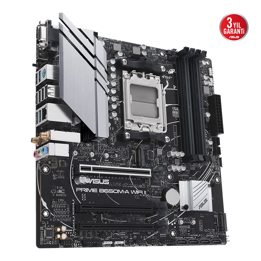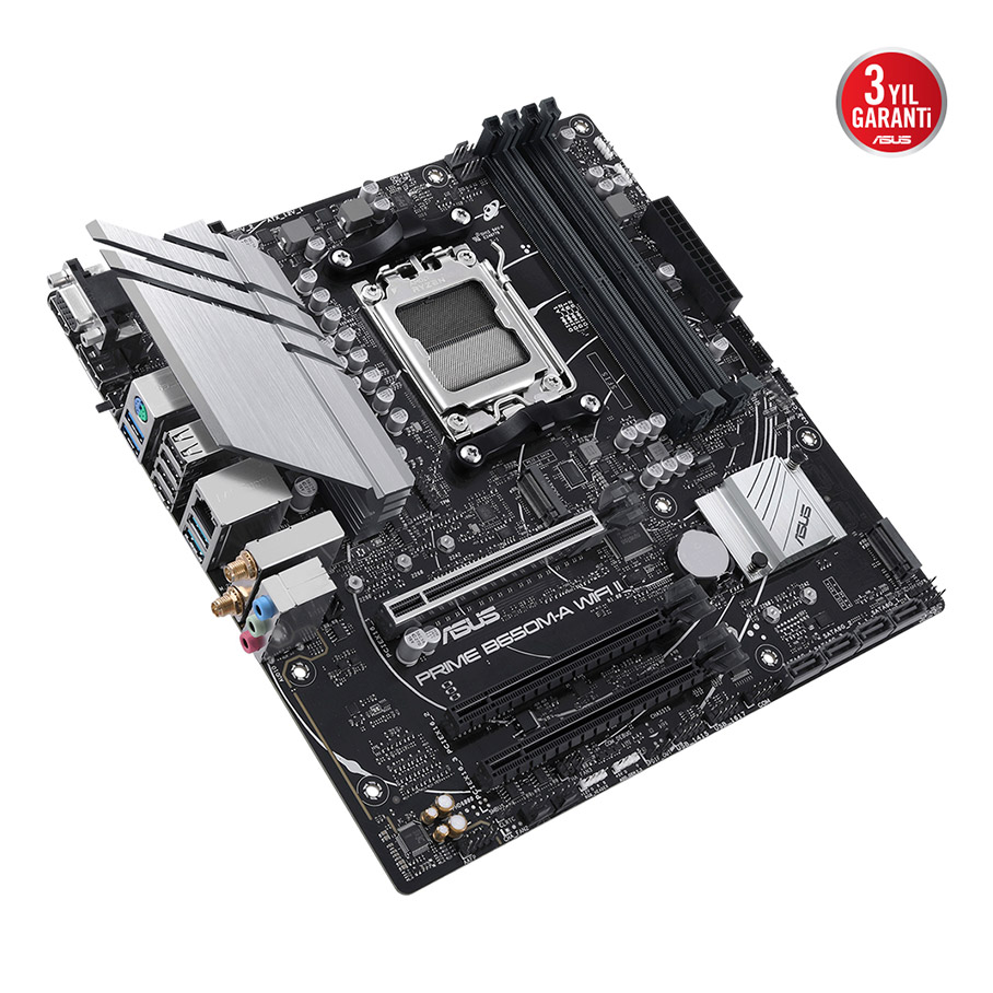 Stok Adı: ASUS PRIME B650M-A WIFI II AMD B650 AM5 DDR5 6400 DP HDMI VGA Çift M2 USB3.2 AX